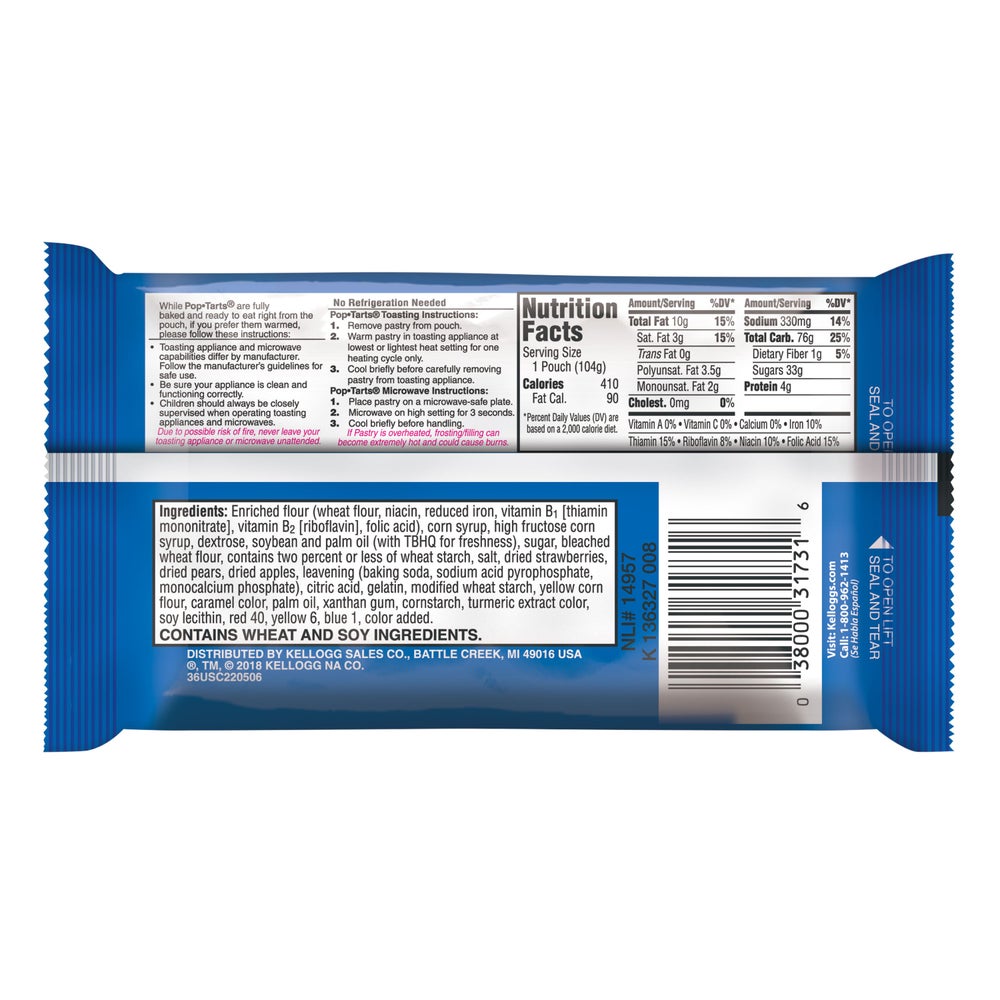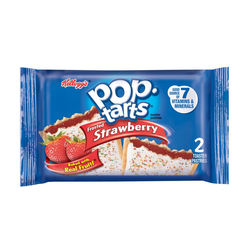 - Two count pouches packed in 12 count display trays, Frosted Strawberry Pop Tarts toaster pastries are a delicious treat, Jump start your day with a strawberry flavored filling encased in a pastry crust and topped with frosting and rainbow sprinkles.