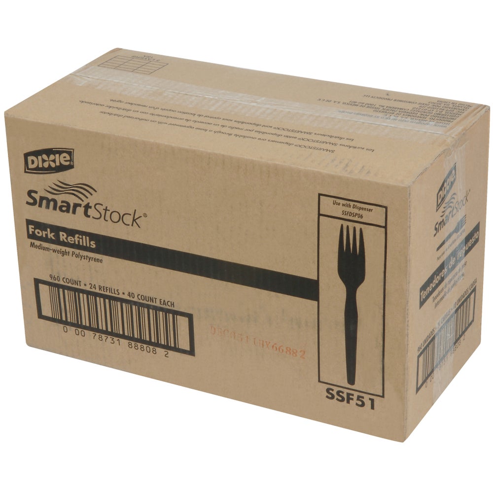 Dixie SmartStock Medium-Weight Plastic Forks, Black, with Full-Length Handles, Polystyrene, 40 Ct Package, 24/Case