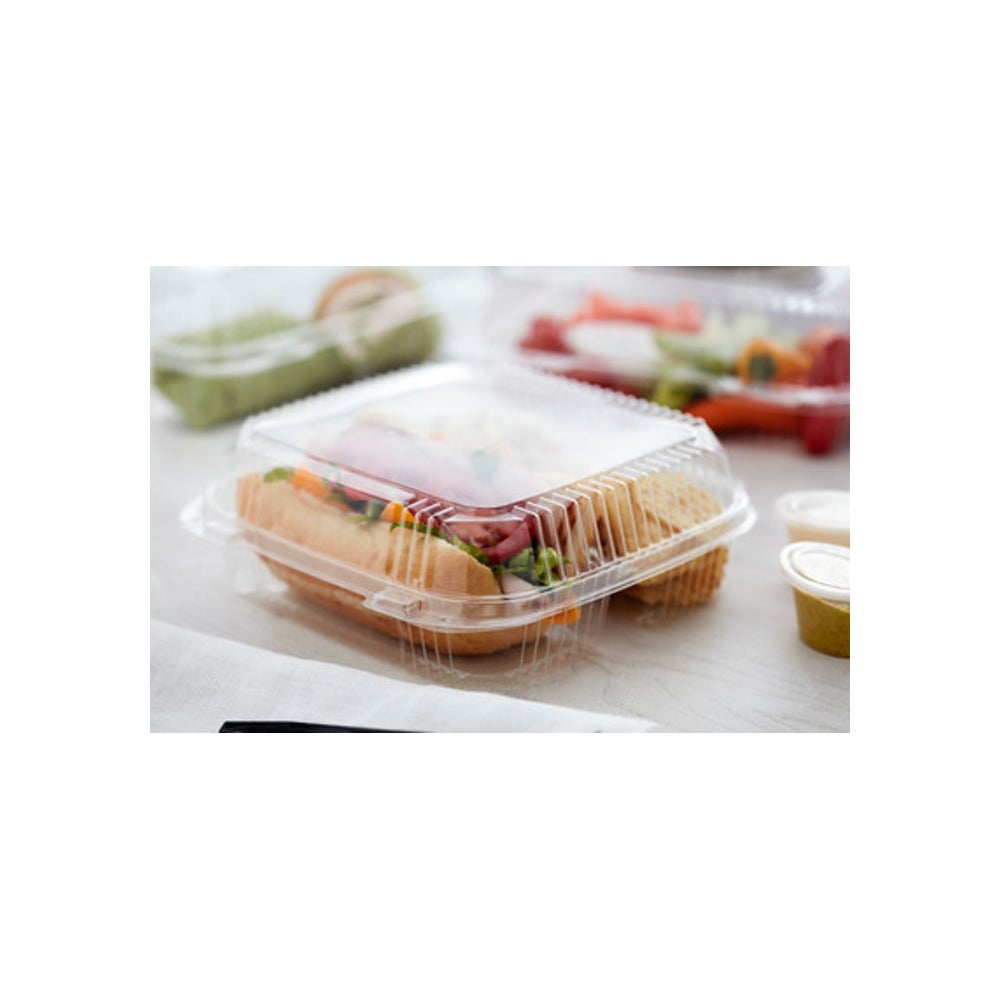Containers, 3-Compartment, 8.2 x 8.3 x 2.9 Inch, Plastic, Clear, Hinged, Polystyrene, 200 Ct Package