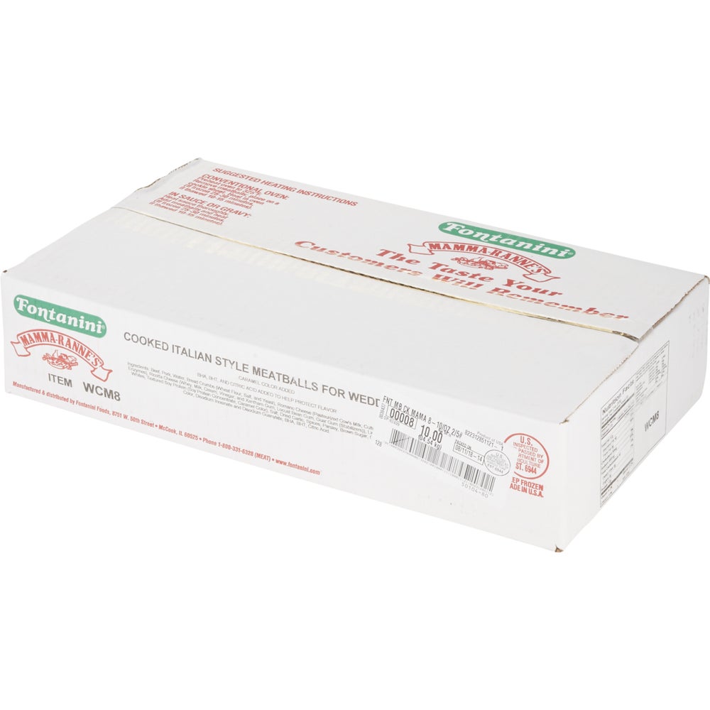 These mini, Italian-style, oven-roasted meatballs are made with lean beef and pork, ricotta and Romano cheeses, and seasoned with fresh spices. Easy to heat and serve, they are ideal for wedding soup, in a calzone, or as a pizza topping.