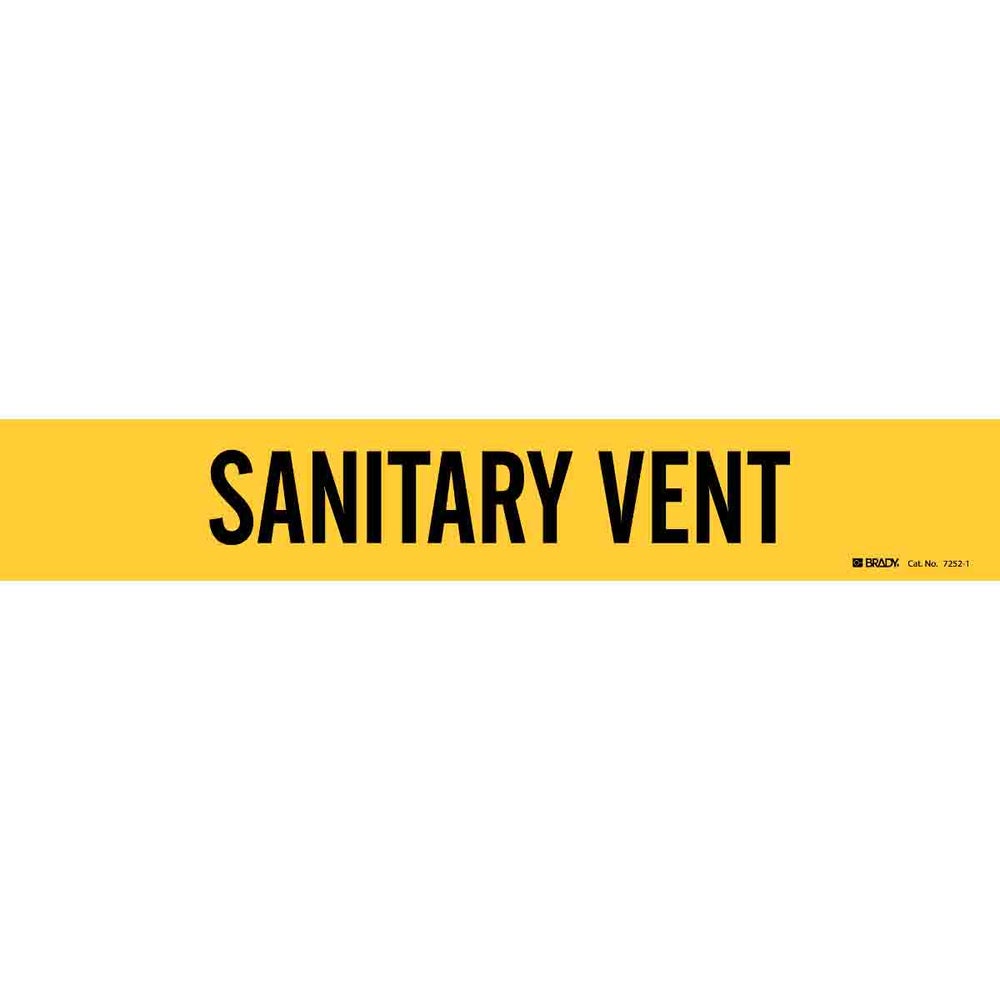 Pipe Marker, 2.25 x 14 Inch, Sanitary Vent, Black On Yellow, Vinyl, Fits 2.25 – 7.87 Inch Pipe Diameters