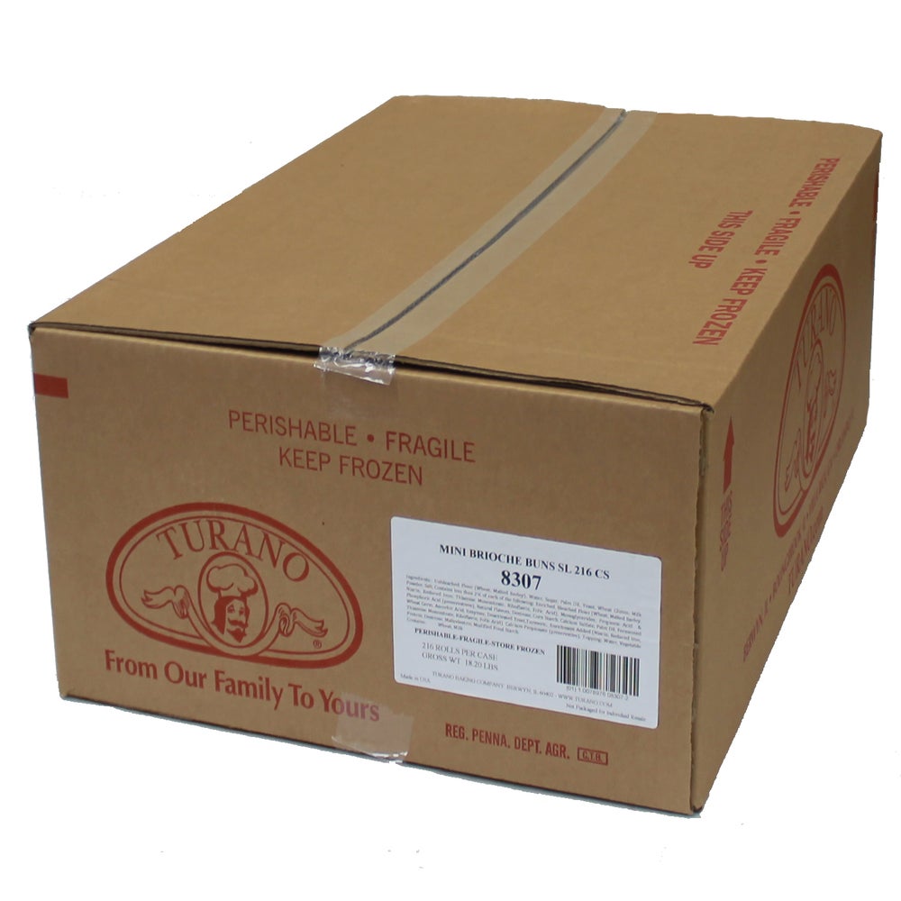 Turano Mini Brioche Buns, Sliced, Frozen, 1.2 Ounce, 18 Ct Bag, 12/Case