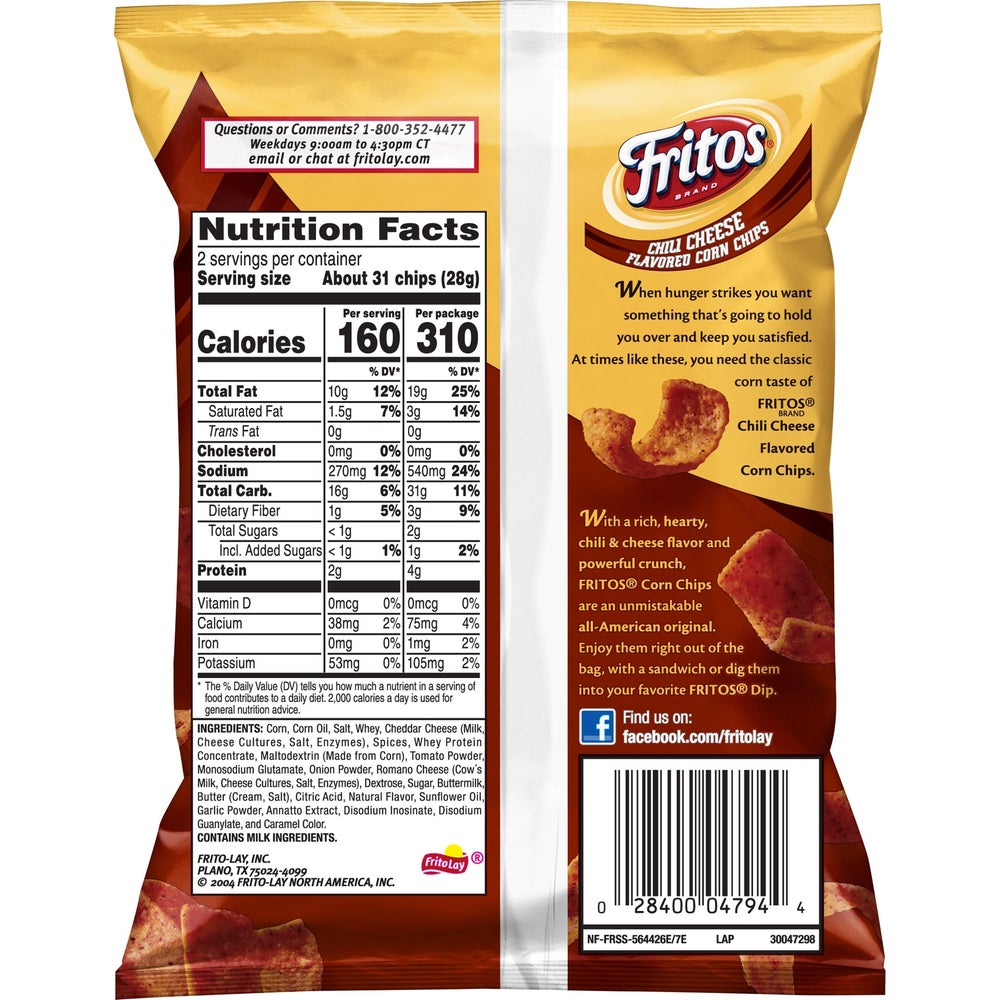 Fritos Chili Cheese Corn Chips, Large Single-Serve, 2 Oz Bag, 64/Case