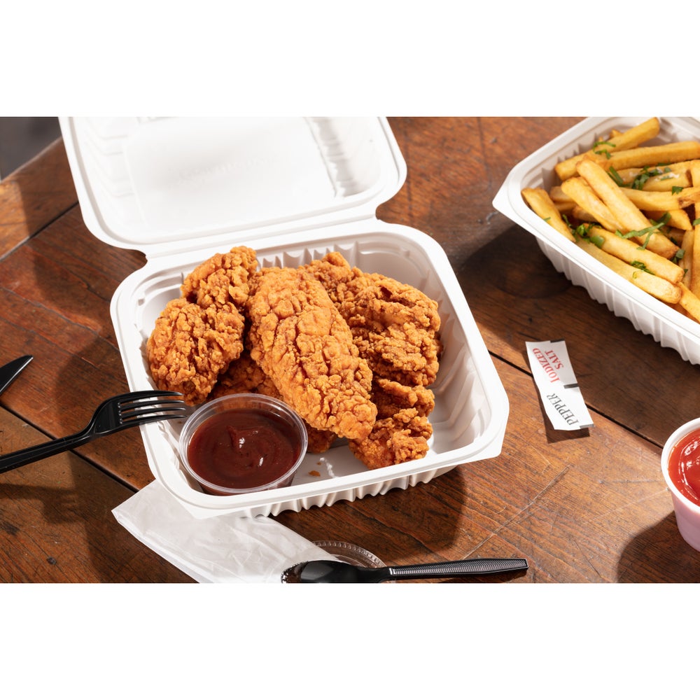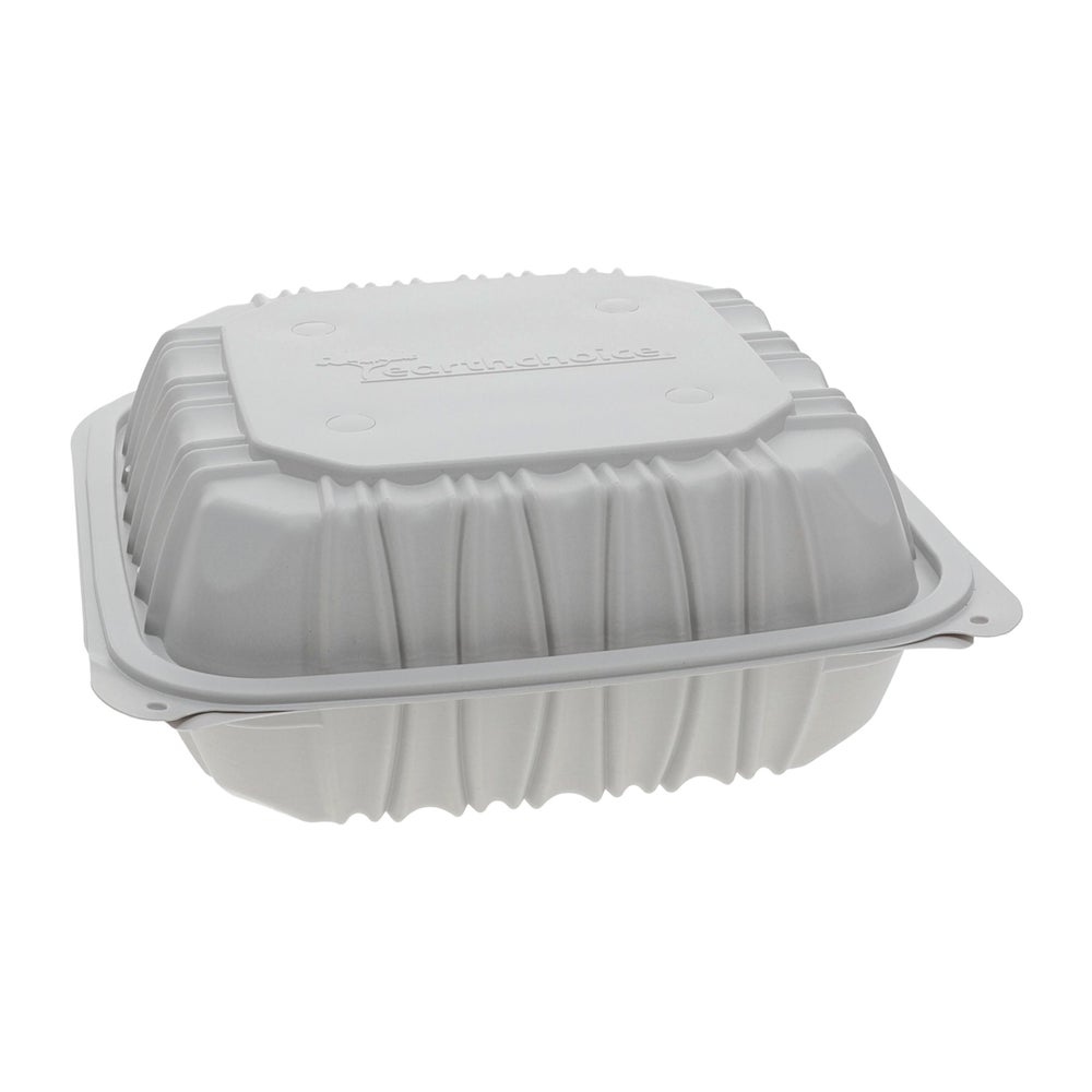 Earthchoice 8.5 x 8.5 Inch 1-Compartment Containers, White, With Hinged Lid, Optional Venting, Mineral Filled Polypropylene, 73 Ct Bag, 2/Case