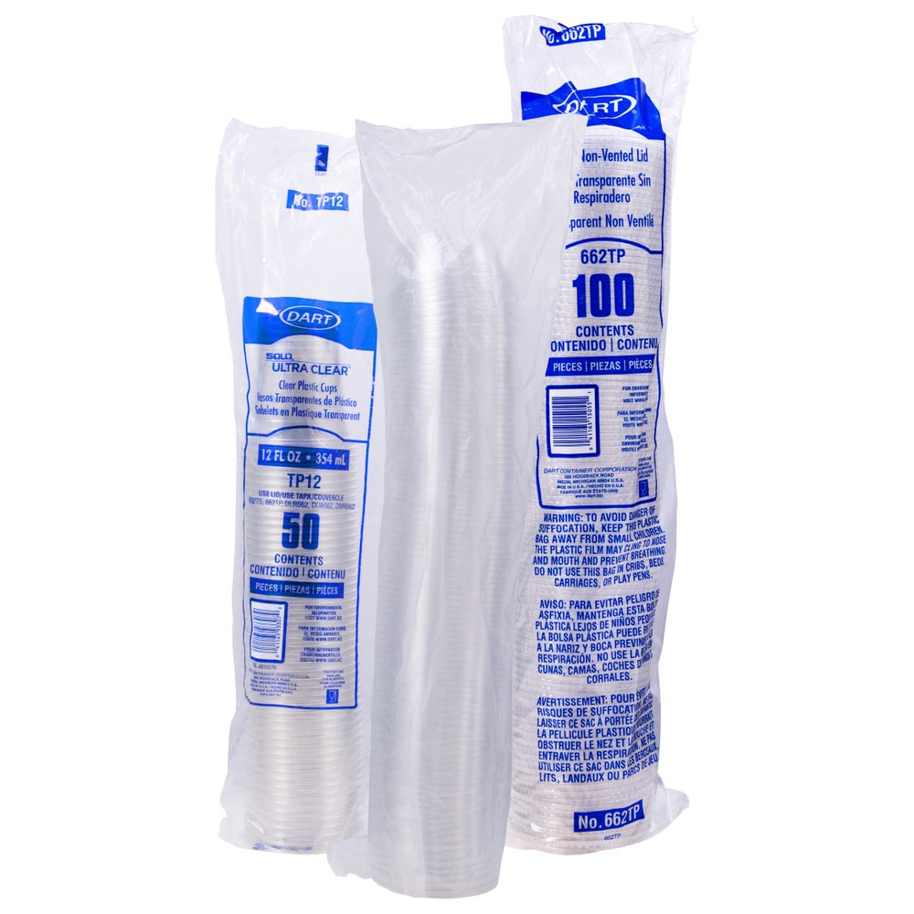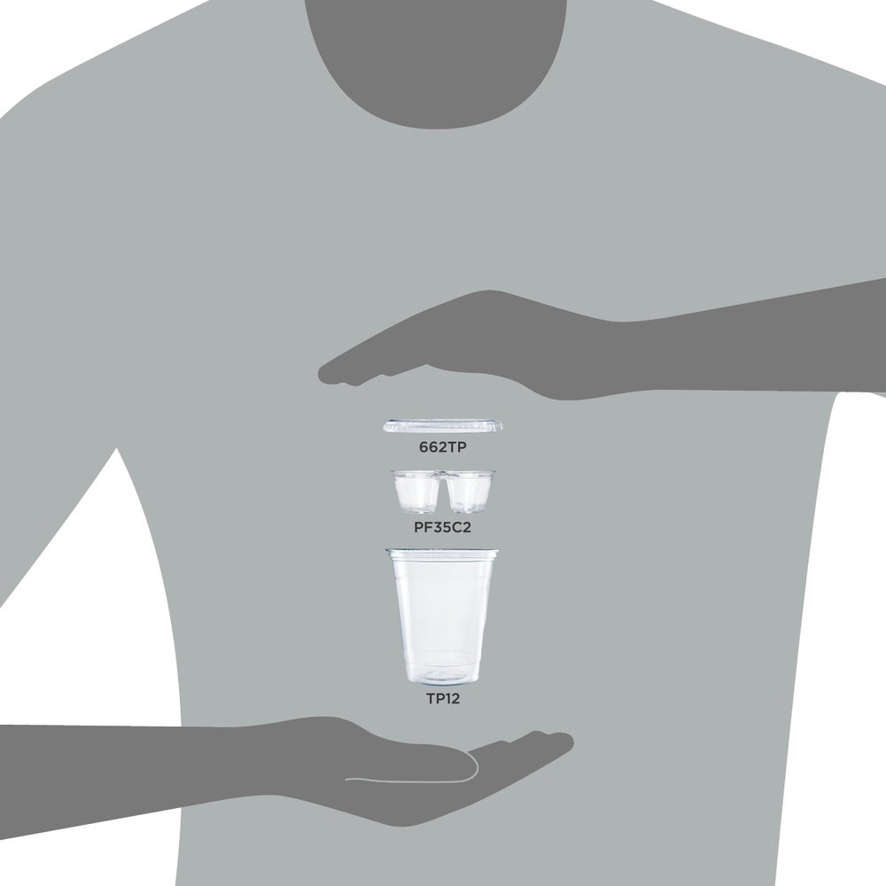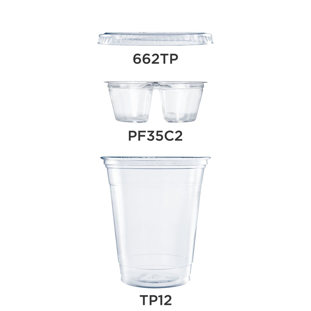 These Solo 12-ounce plastic parfait cups offer two compartment inserts for storage of the parfait and parfait topping. Made of PET plastic.