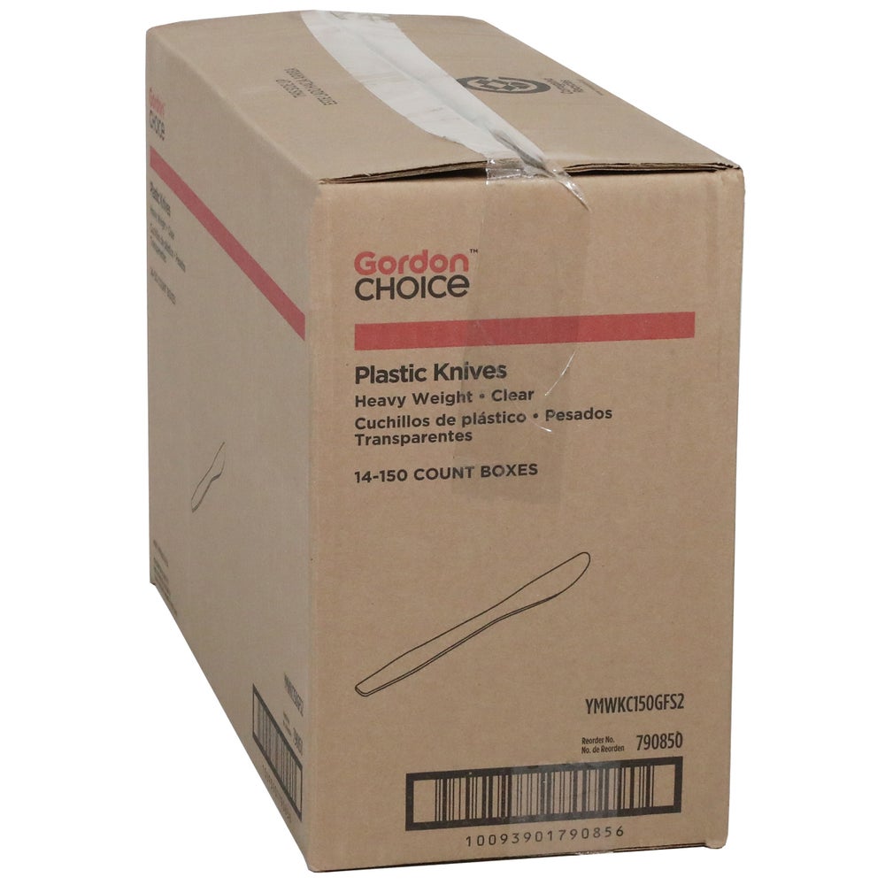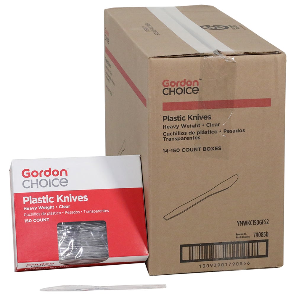 Gordon Choice Medium-Heavyweight Plastic Knives, Clear, with Medium-Length Handles, Polystyrene, 150 Ct Box, 14/Case