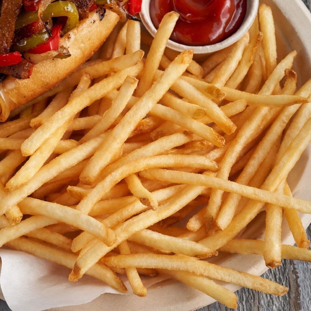 These skin-on fries are lightly coated with potato starch for enhanced potato flavor.