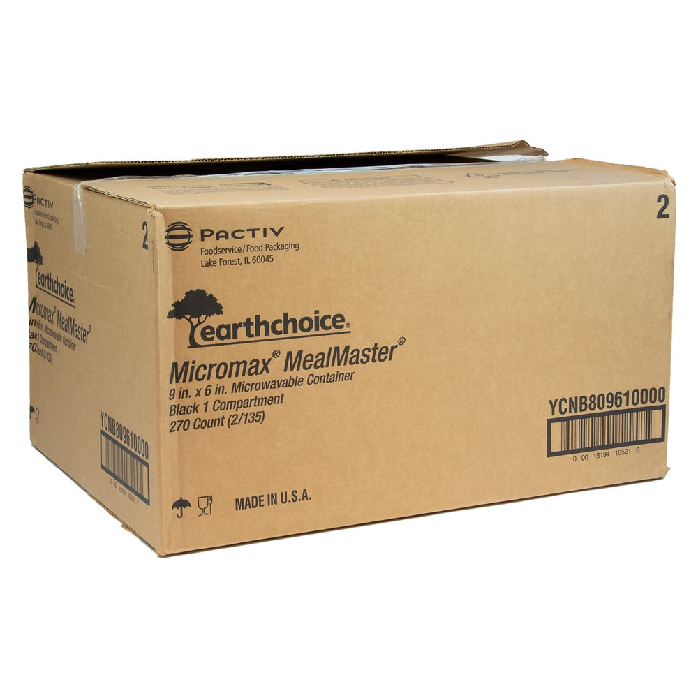 Earthchoice 6 x 9 Inch 1-Compartment Containers, Black, Hinged, Mineral Filled Polypropylene, 270 Ct Package, 1/Case