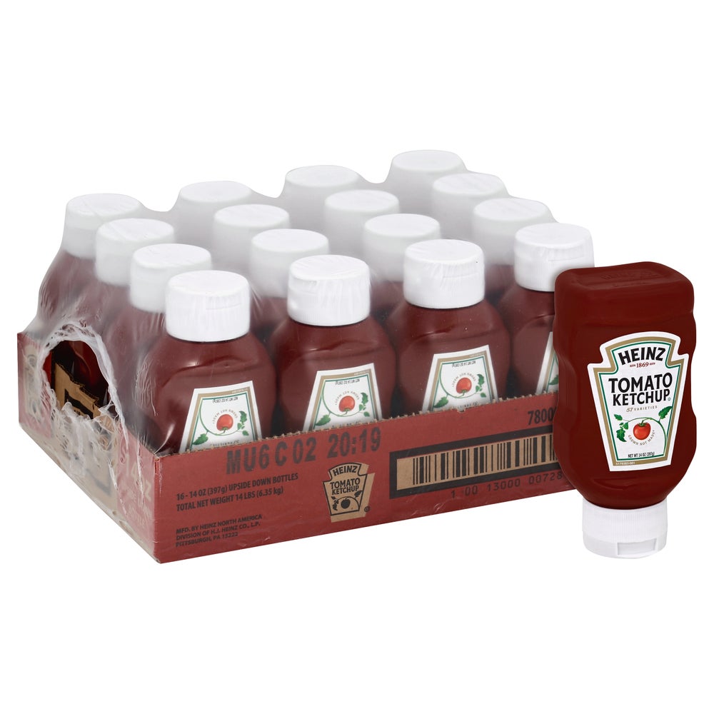 Heinz Ketchup, Upside Down Squeeze Bottles, Red, 14 Oz Bottle, 16/Case