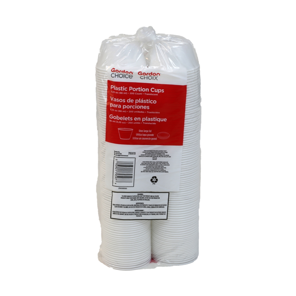 Cups, Souffle Portion, 3.25 Ounce, Plastic, Translucent, Polystyrene, 200 Ct Package