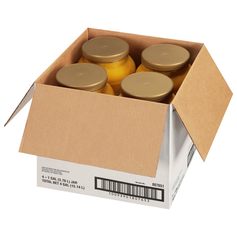 - This premium mustard comes in a cost-saving, one-gallon jar.