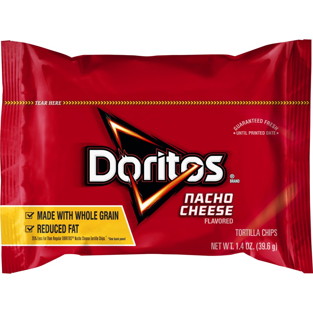 Doritos Nacho Cheese Tortilla Chips, Reduced-Fat, Top N Go, Single-Serve, 1.4 Oz Bag, 44/Case