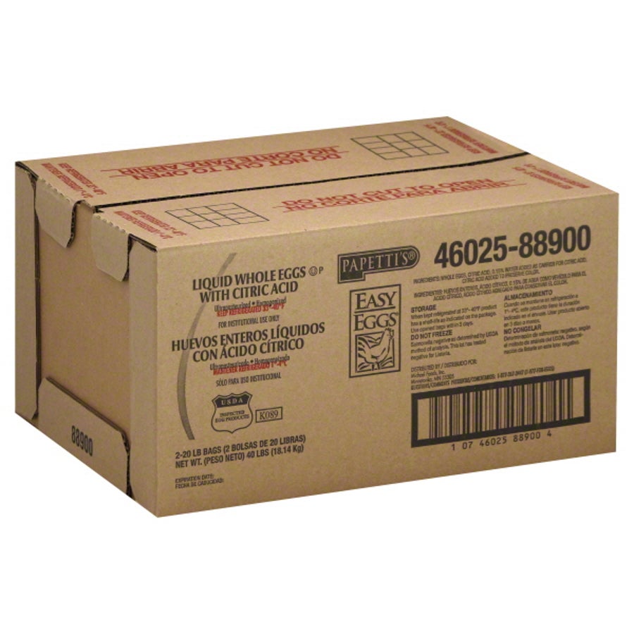 Papetti's Liquid Eggs, with Citric Acid, Pasteurized, Refrigerated, 20 Lb Box, 2/Case