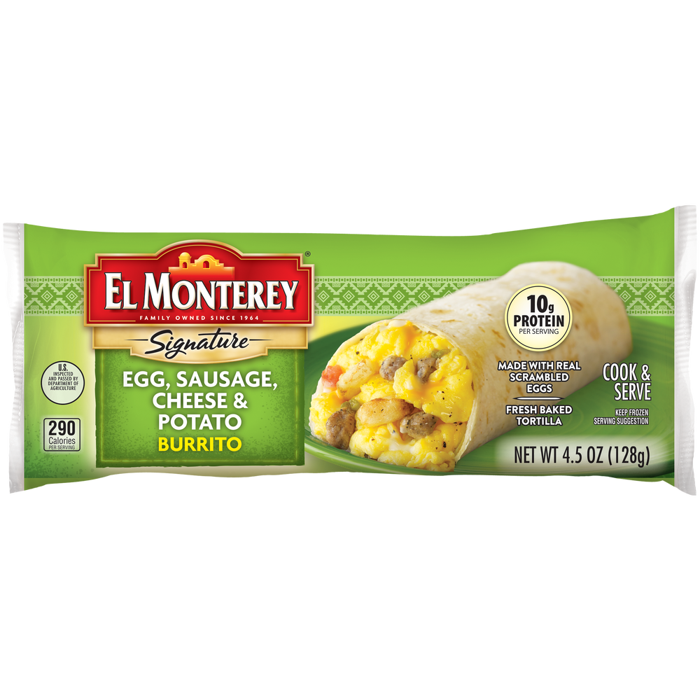 El Monterey Egg Sausage Breakfast Burritos, Cheese, Potato, 4.5 Oz Package, 24/Case