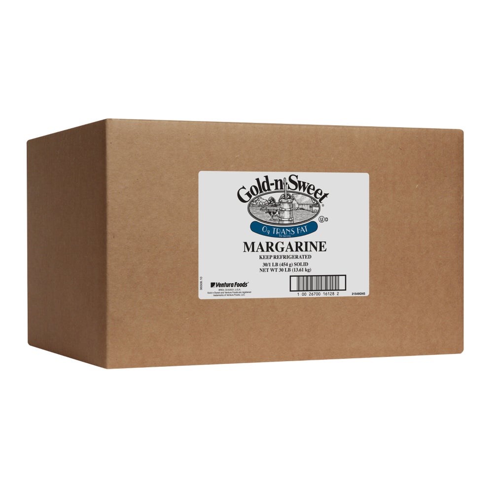 This Gold-n-Sweet margarine sets the industry standard in flavor and consistency with its pale yellow color, smooth body, buttery flavor and aroma. This product is an economical alternative to butter in a variety of applications. Try it on baked potatoes, rolls, pancakes and much more.