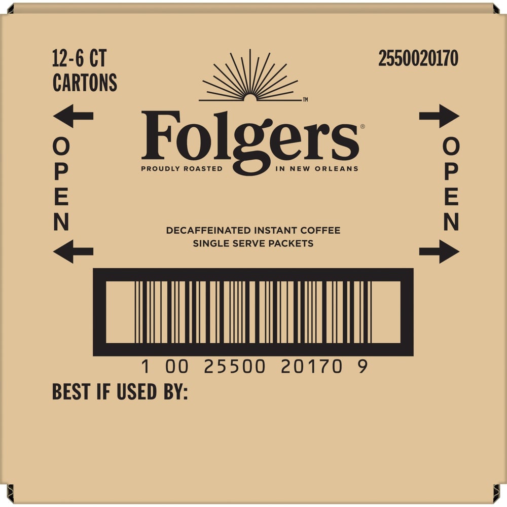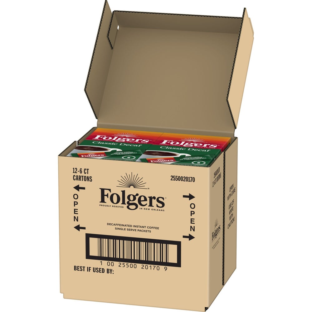 Folgers Instant Coffee, Decaffeinated, 0.42 Ounce, 6 Ct Package, 12/Case