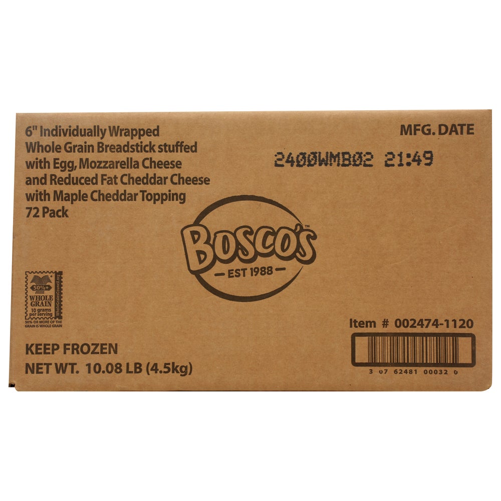 Breadsticks, Breakfast, Cheese & Egg Stuffed, with Maple Cheddar Topping, Whole Grain, 6 Inch, Parbaked, Frozen Individually Wrapped, 2.24 Oz Piece, 72 Per Case