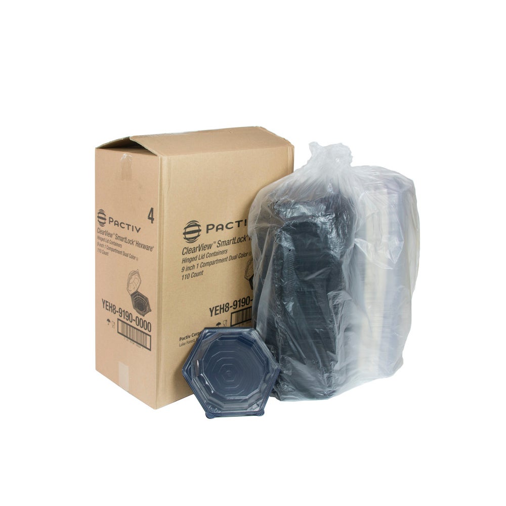 Pactiv 9 Inch Plastic Containers, Black, Hexagonal, Hinged, Polystyrene, 110 Ct Package, 1/Case