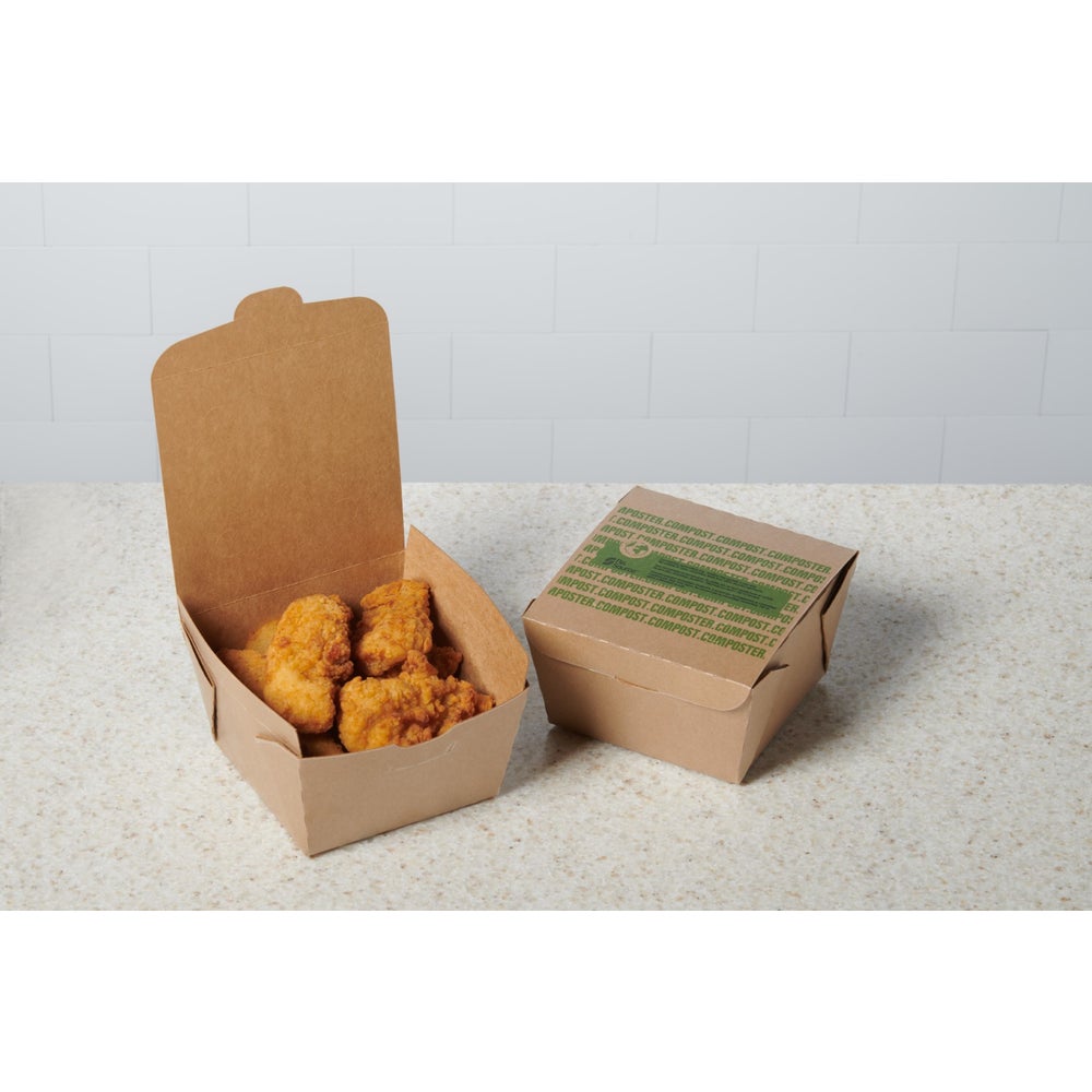 Re.Source #1 4.5 X 4.5 X 2.5 Inch Paper Take-Out Boxes, 37 Ounce, Kraft, Tamper Evident, Compostable, 52 Ct Package, 6/Case