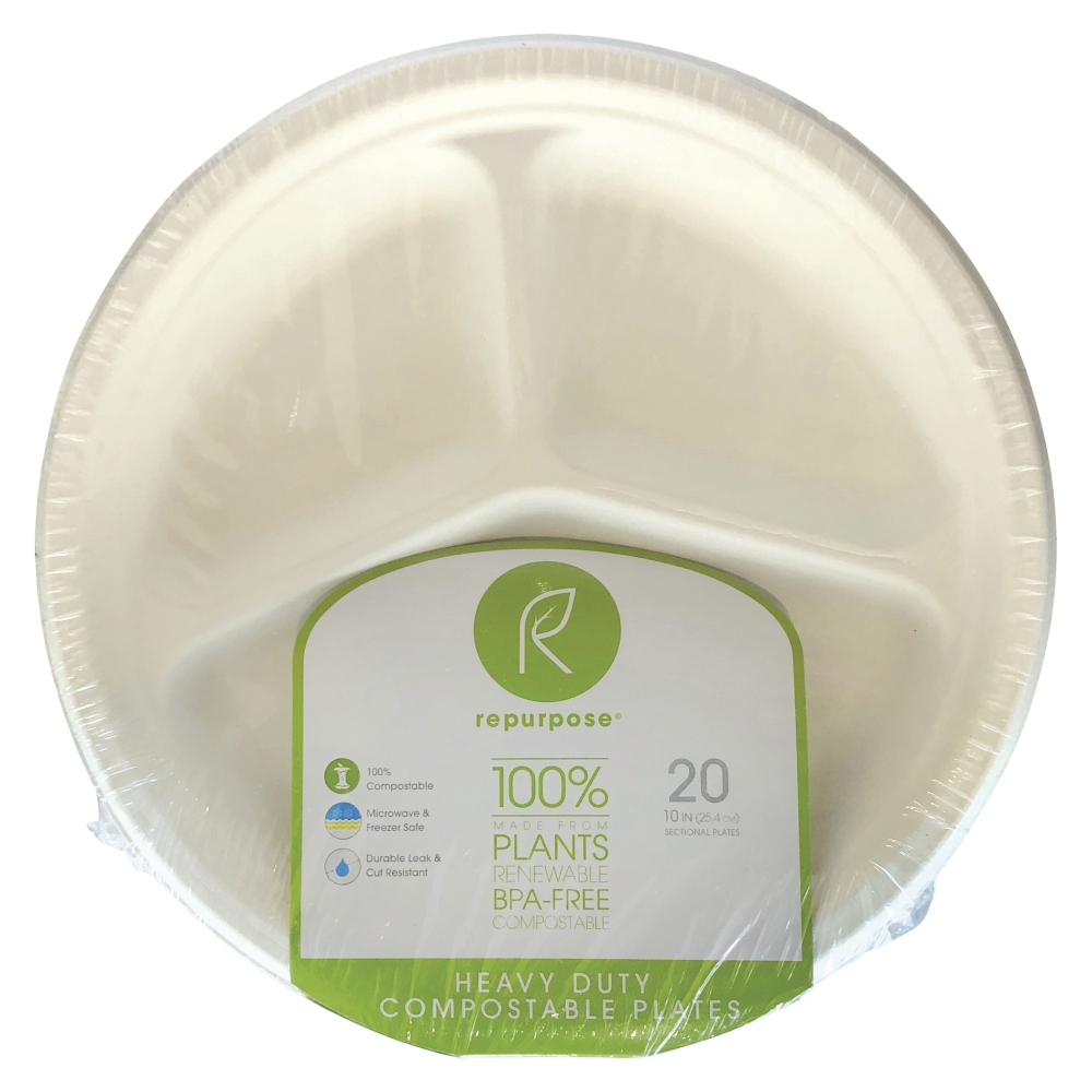 Plates, Sectional, 10 Inch, Compostable, BPA-Free, Made from Plants, 20 Ct Package