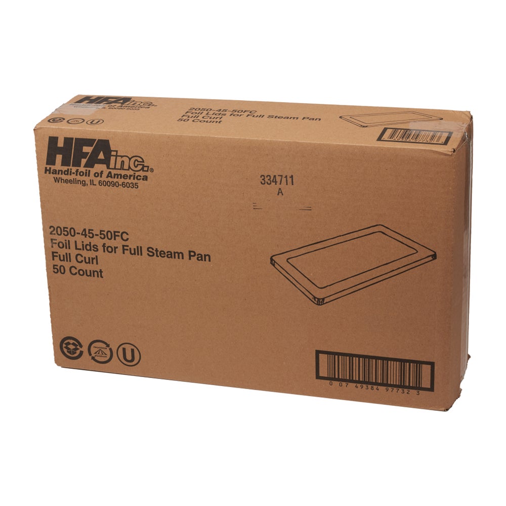 These HFA full-size steam table lids have full curl edges on all 4 corners to promote safer handling than traditional lids.