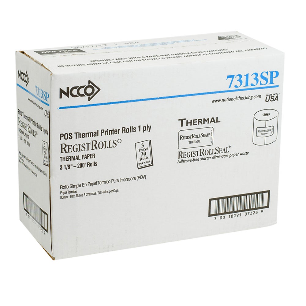 National Checking Company 3.13 Inch Thermal 1-Ply Register Rolls, White, 200 Foot, 30 Ct Package, 1/Case