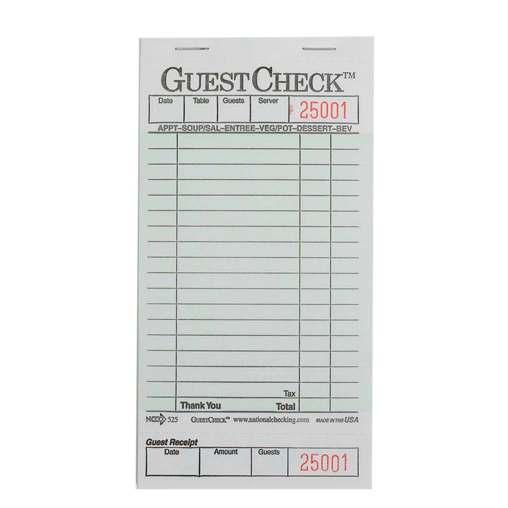 • Guest Checks can help reduce errors, ensure accuracy and increase total sales.These guest checks are lighter weight than similar medium cardboard guest checks, and are perfect for situations where guest checks are handled once to record an order and a duplicate copy is not needed.