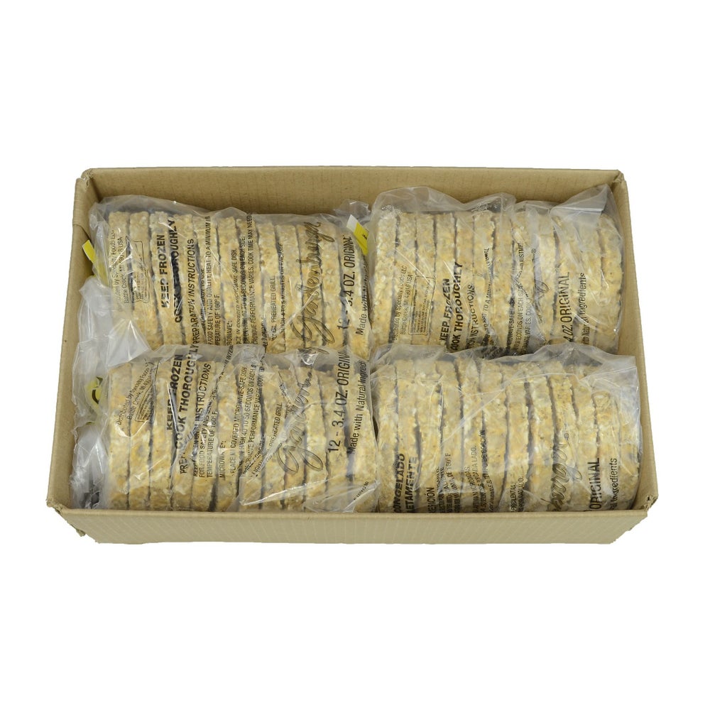 GB Original Vegetarian Burgers, Cooked, Frozen, 3.4 Oz Package, 48/Case