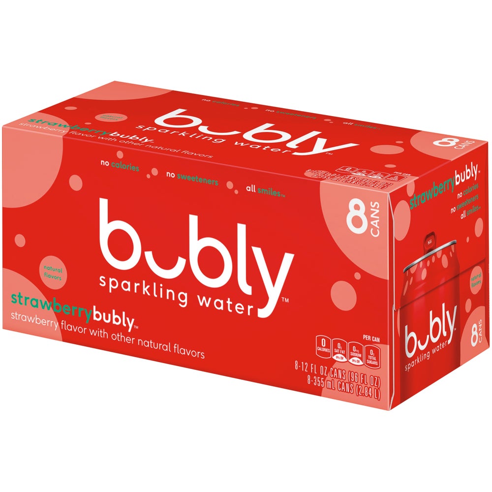 Bubly Strawberry Sparkling Water, 12 Fluid Ounce, 8 Ct Package, 3/Case
