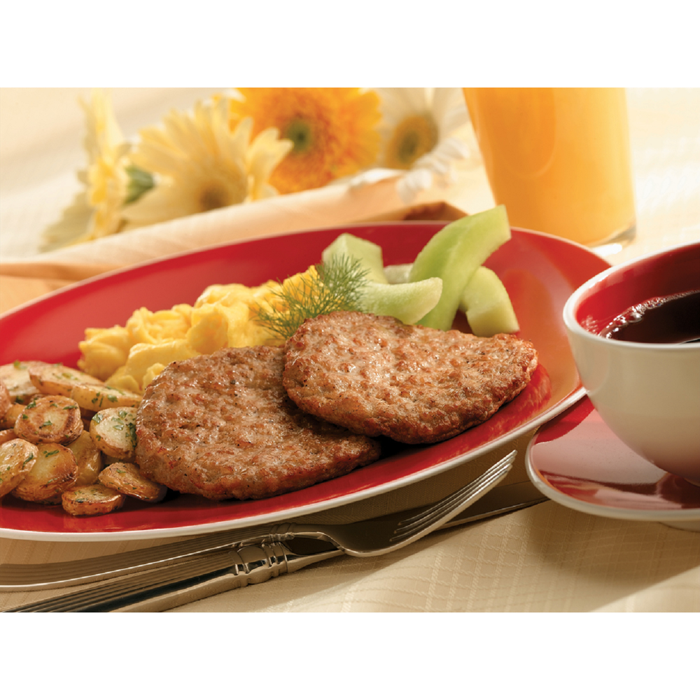 These fully cooked sausage patties are made with pork, and feature a blend of herbs and spices including black and red pepper.