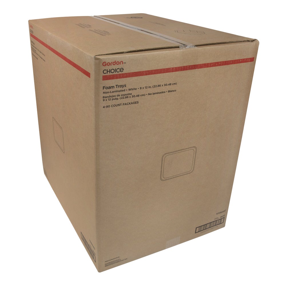 Gordon Choice 9 x 12 Inch Foam Trays, White, Polystyrene, 90 Ct Package, 4/Case
