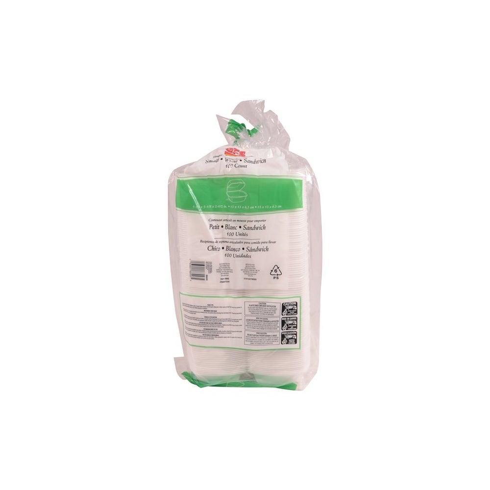 Gordon Choice Small 5.13 x 5.13 x 2.5 Inch Foam Hamburger Containers, White, Hinged, Polystyrene, 100 Ct Package, 5/Case