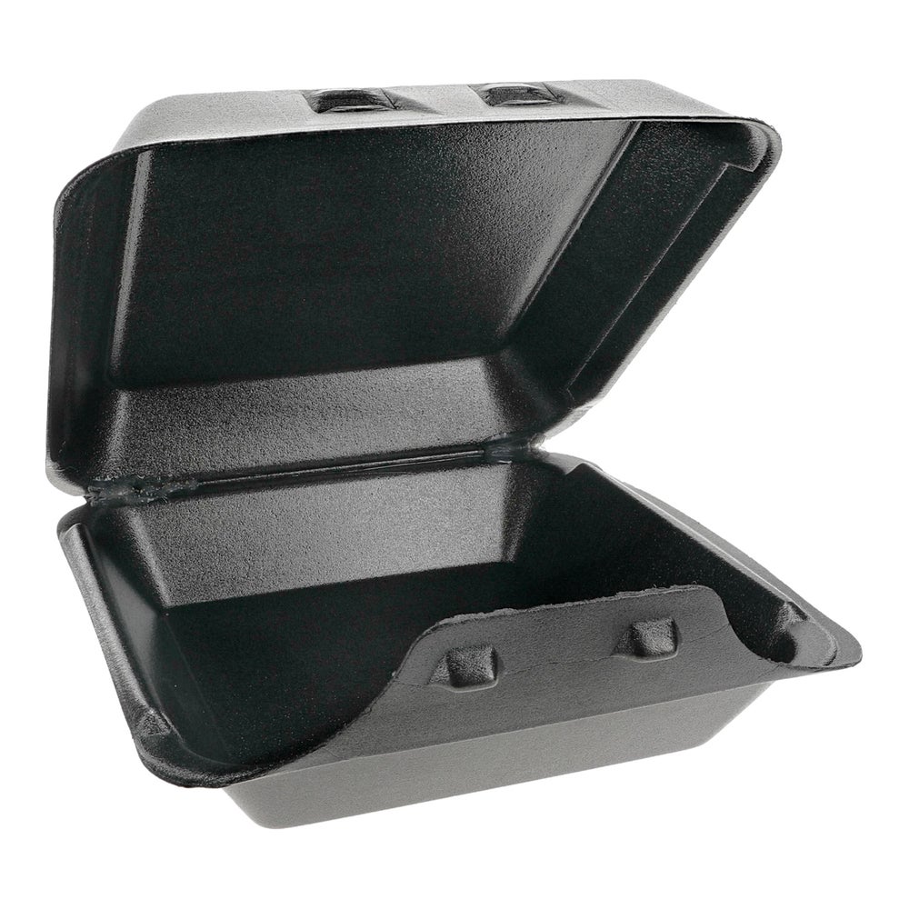Pactiv Large 9 x 9.5 x 3.25 Inch Foam 1-Compartment Containers, Black, Hinged, Polystyrene, 150/Case