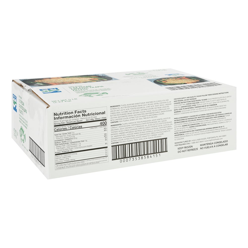 These Oven Ready Pecan Crusted Tilapia Fillets feature a savory seasoned, pecan crusted breading. This perfectly crispy, slightly nutty outer crust complements the Tilapias mildly sweet, taste, preserving its medium-firm, flaky texture inside.