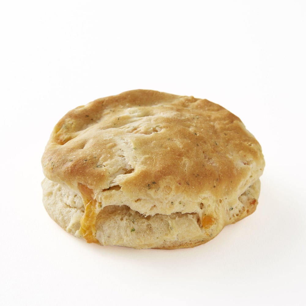 - Pre-portioned Garlic Cheddar biscuit dough in an easy, freezer-to-oven format from Pillsbury. Formulated to produce light and fluffy 3.17 ounce easy split biscuits with a garlic cheddar, scratch-like flavor, texture, and appearance.