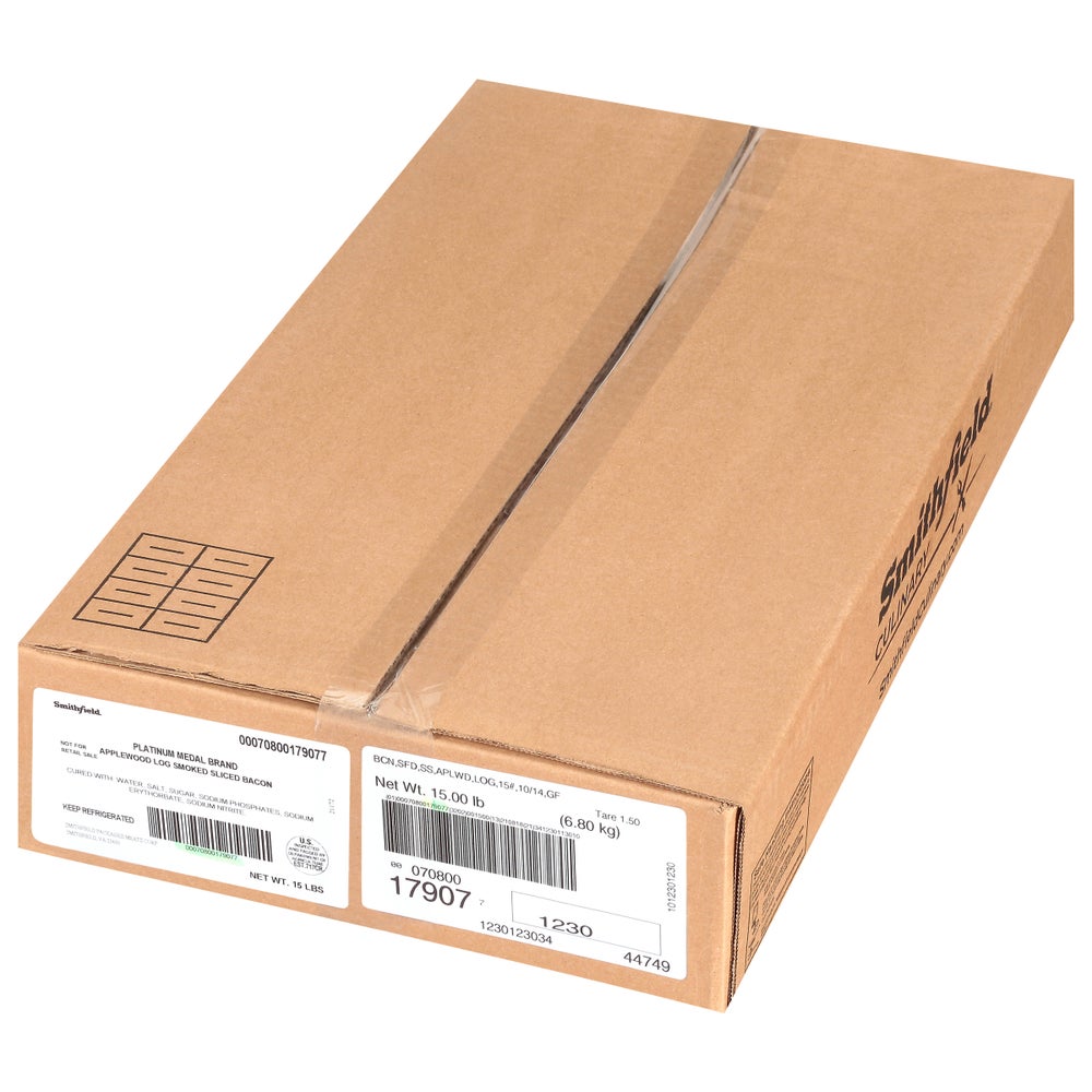 Smithfield Applewood Smoked Laid-Out Bacon, 10-14 Slices Per Pound, Refrigerated, 15 Lb Package, 1/Case