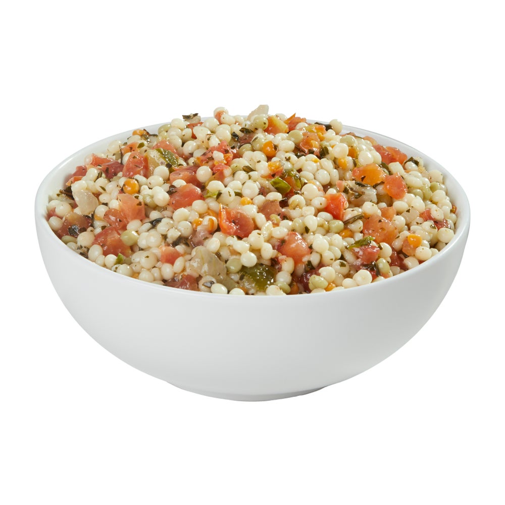 - This tomato-basil couscous salad is fully prepared to save labor and minimize waste and is vegetarian.