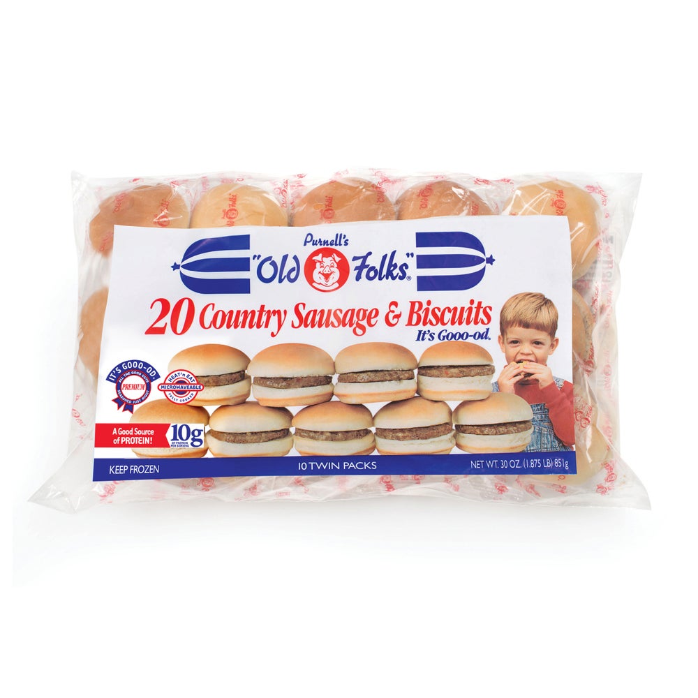 Purnell Biscuit Sausage Breakfast Sandwich, 20 Ct Bag, 6/Case