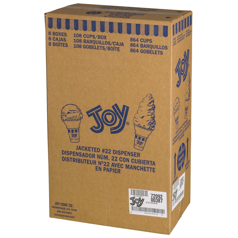Joy Jacketed Cake Cup Ice Cream Cones, #22, 108 Ct Box, 8/Case