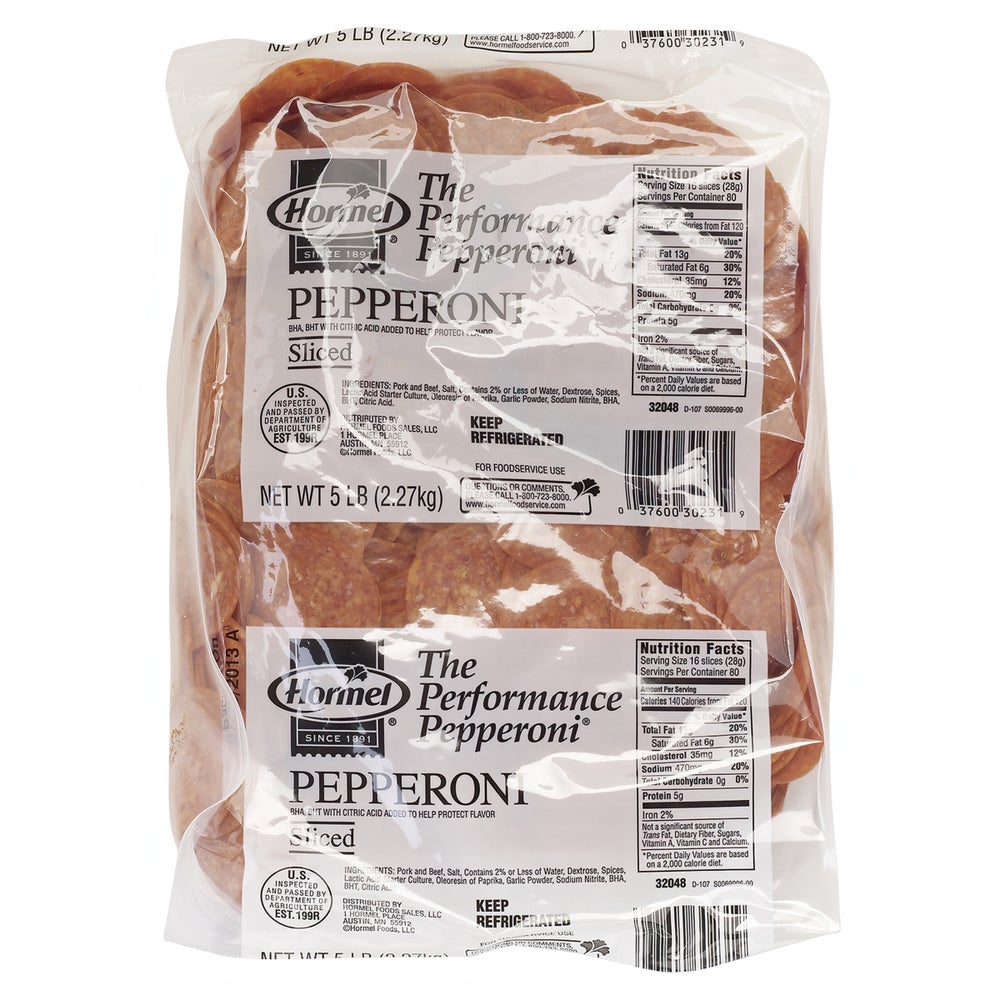 Pepperoni en rodajas, 16 unidades por onza, Fresco, 5 Libr Bol, 2/Caj
