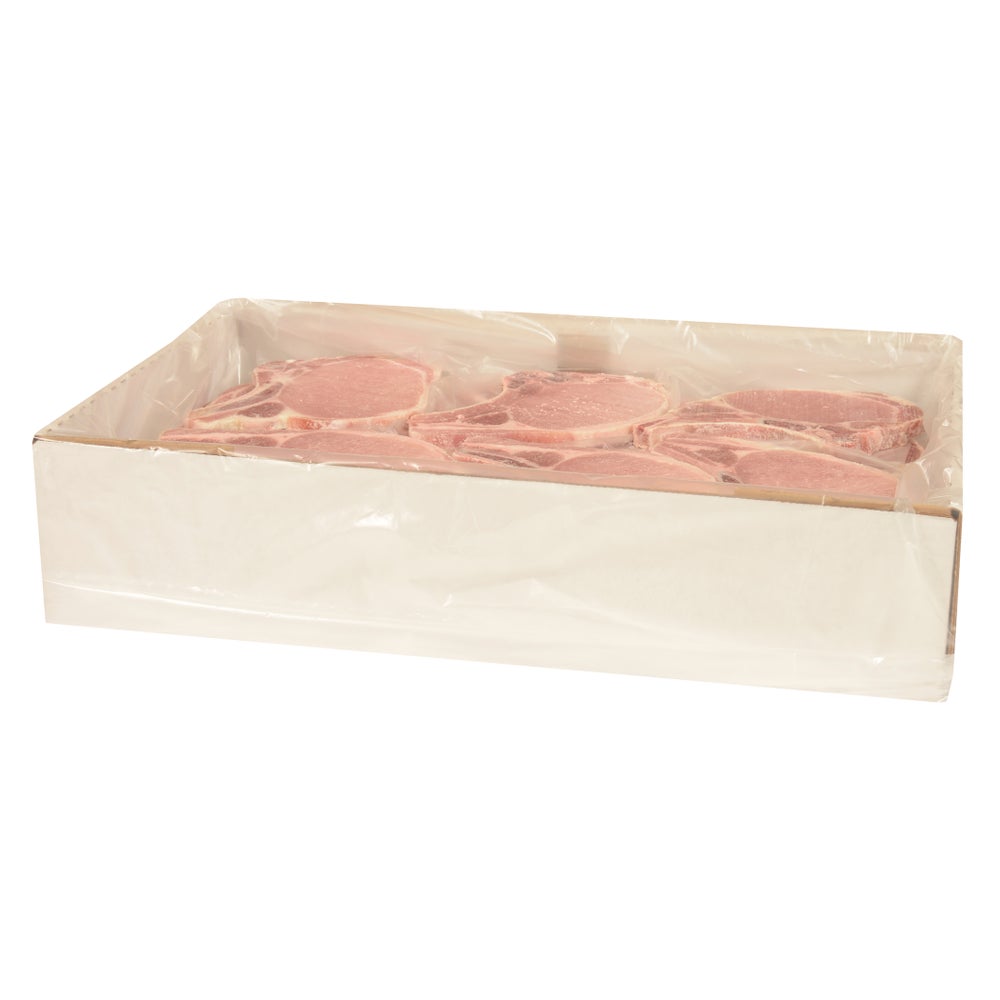 Chuletas de lomo de cerdo marinadas, con hueso, corte central, 4 onzas, IQF, 12 Libr Paq, 1/Caj