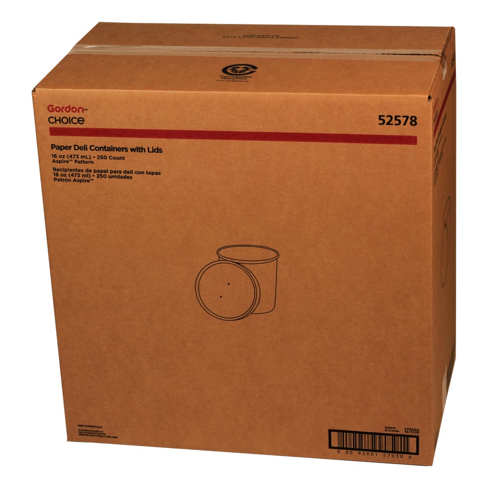 Contenedores de delicatessen de papel de 16 onzas, patrón Aspire, con tapas, 1 Cda Paq, 250/Caj