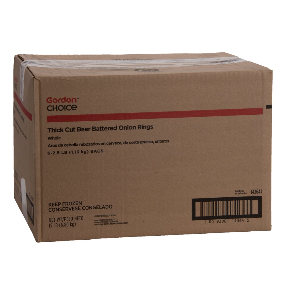 Aros de cebolla rebozados con cerveza, corte grueso, aptos para horno, congelados individualmente, 2.5 Libr Bol, 6/Caj