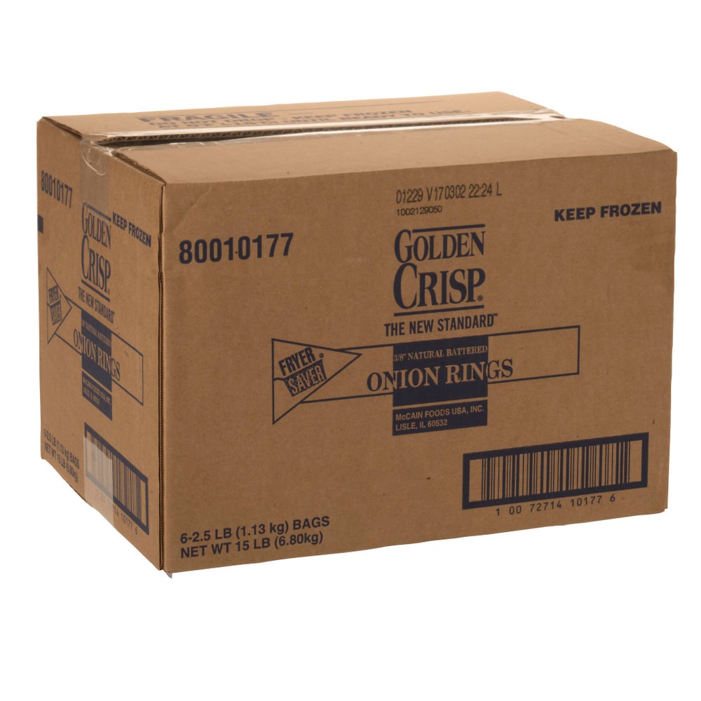 Onion Rings, Battered, 3/8 Inch, Ovenable, IQF, 2.5 Lb Bag