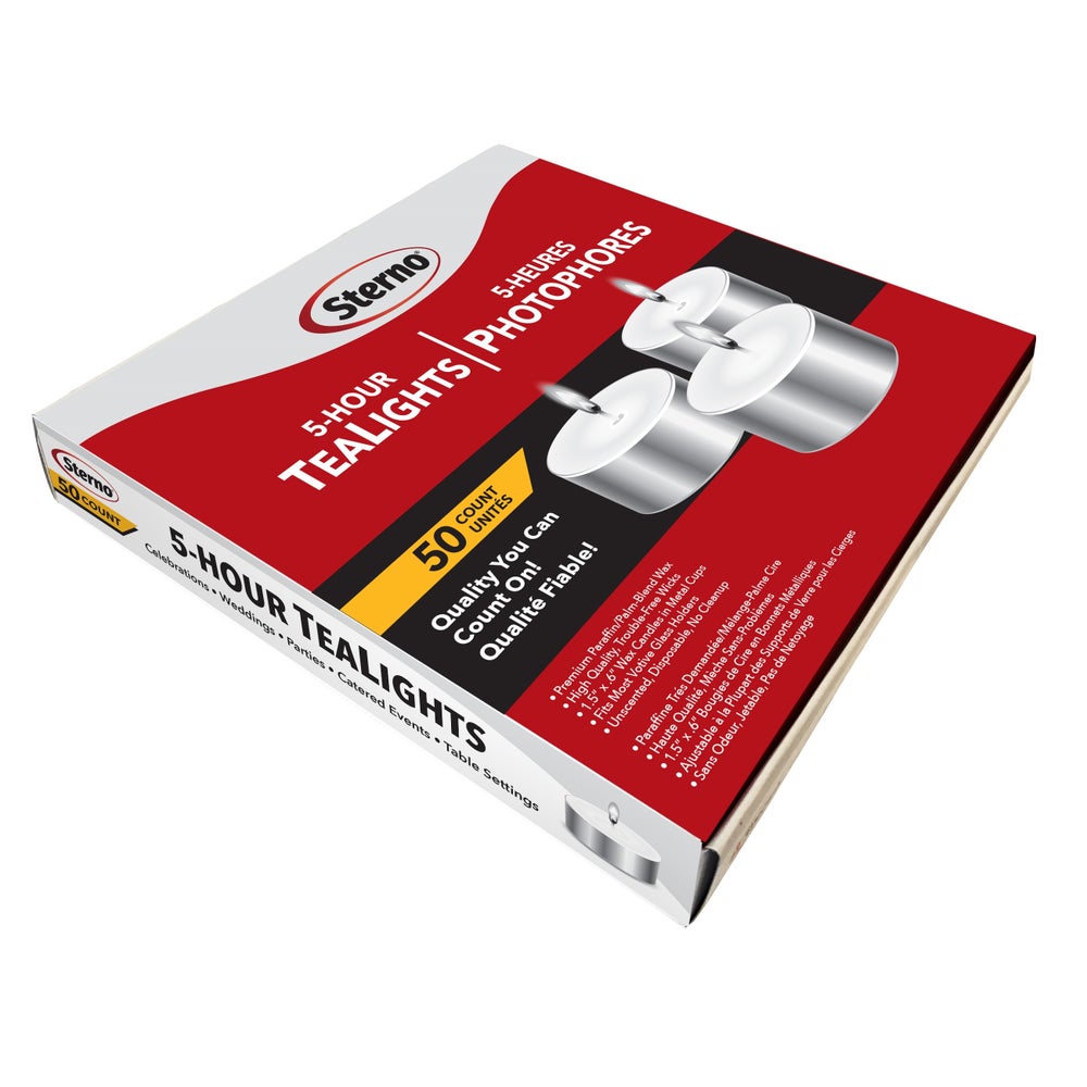 Velas de té de 5 horas, 50 Cdd Cjs, 10/Caj