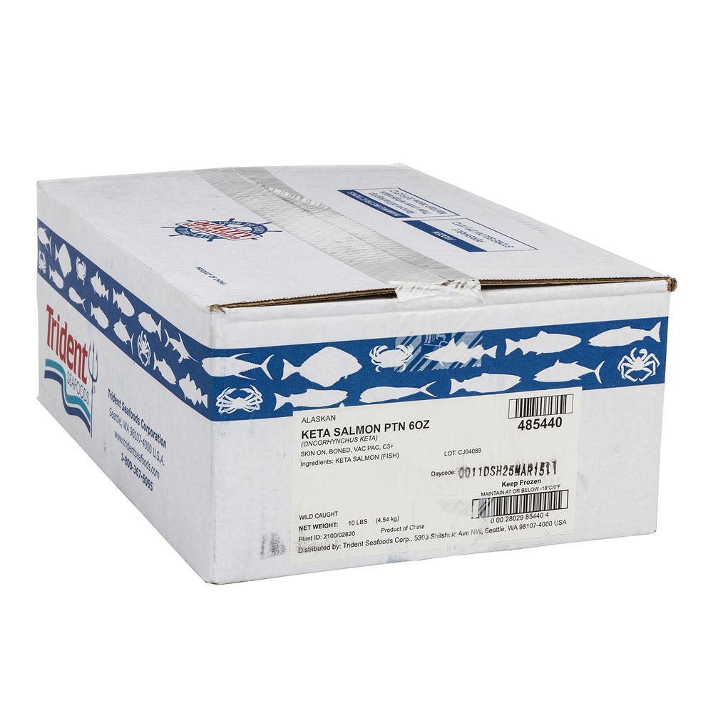 Filetes de salmón keta, sin espinas con piel, 6 onzas, congelados individualmente envasados al vacío, 10 Libr Paq, 1/Caj
