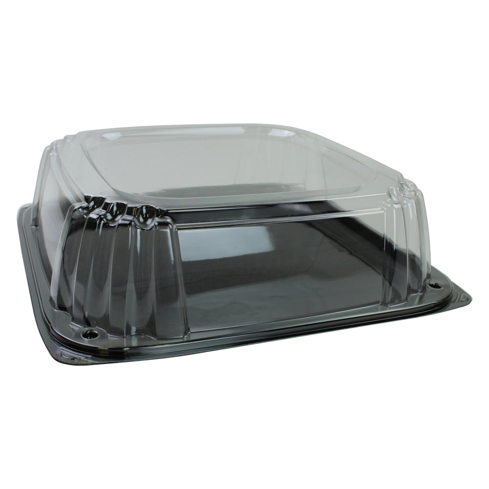 Bandejas de plástico de 14,1 pulgadas, negras, cuadradas, con tapas, PET