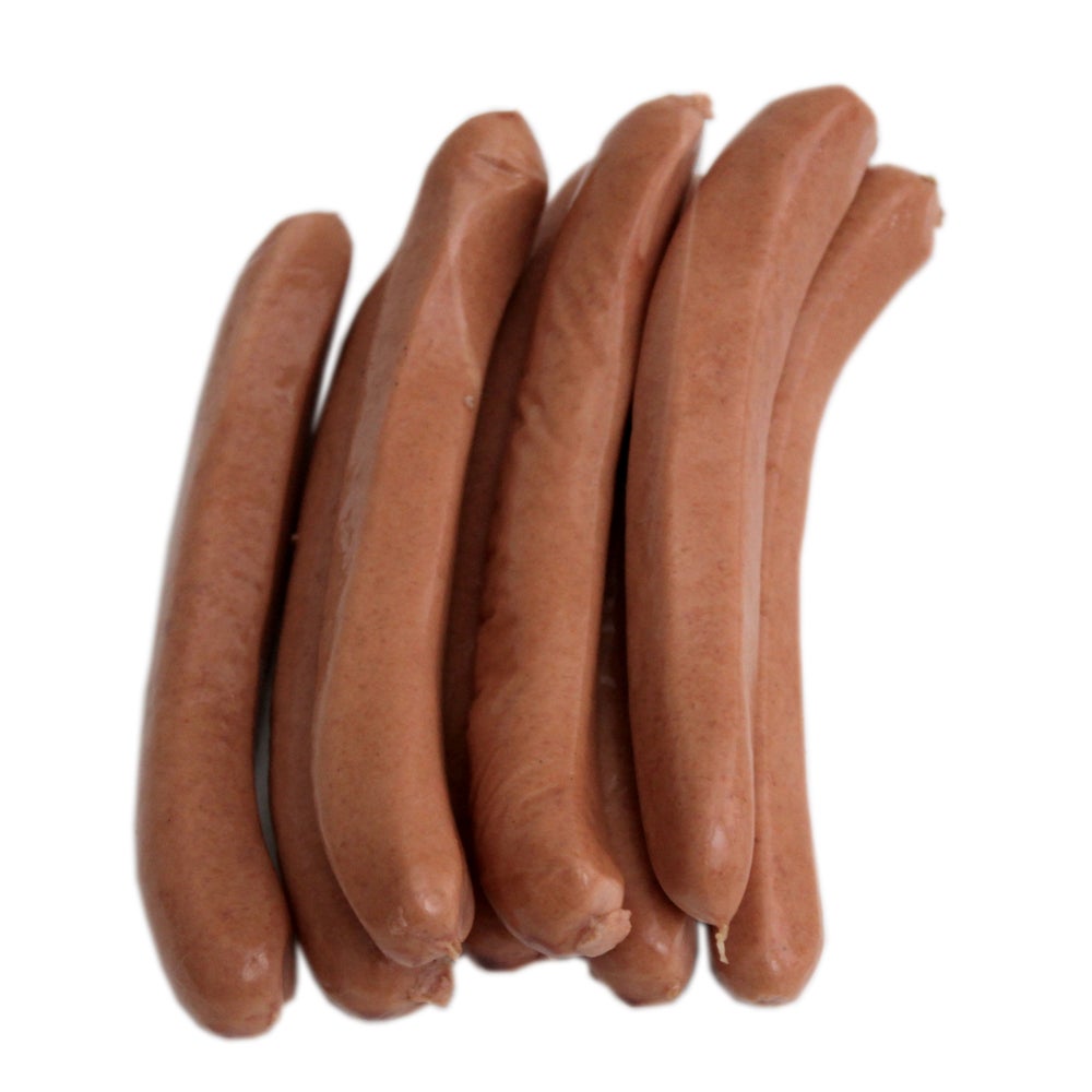 Estos franks completamente cocidos y sin piel son ideales para usar en una variedad de aplicaciones. Hechos de 100% Carne de Res y cerdo molida finamente, este producto ahumado con madera dura presenta una mezcla de especias exclusivas.