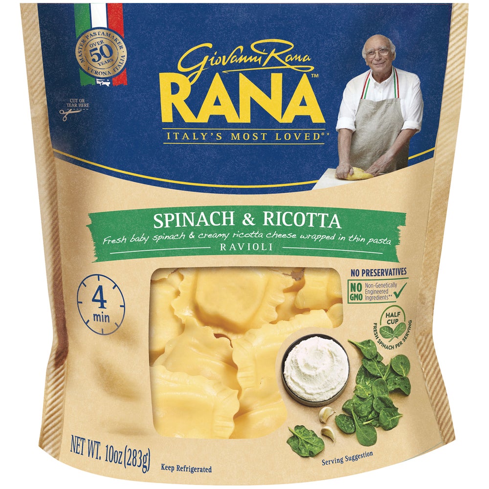 Pasta, Spinach & Ricotta Ravioli, No GMO, No Preservatives, Refrigerated, 10 Oz Bag