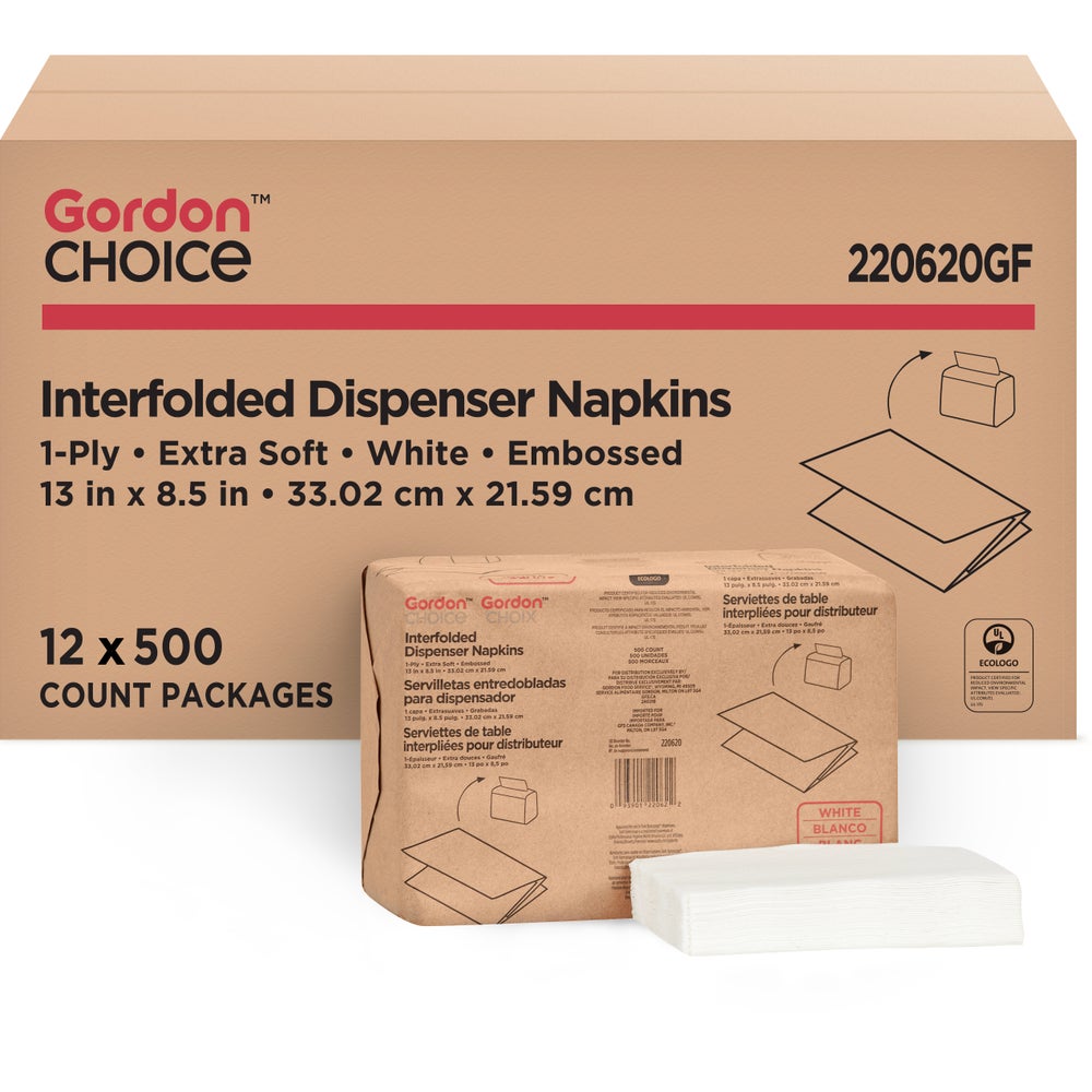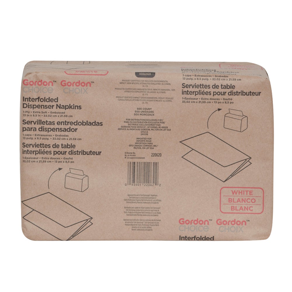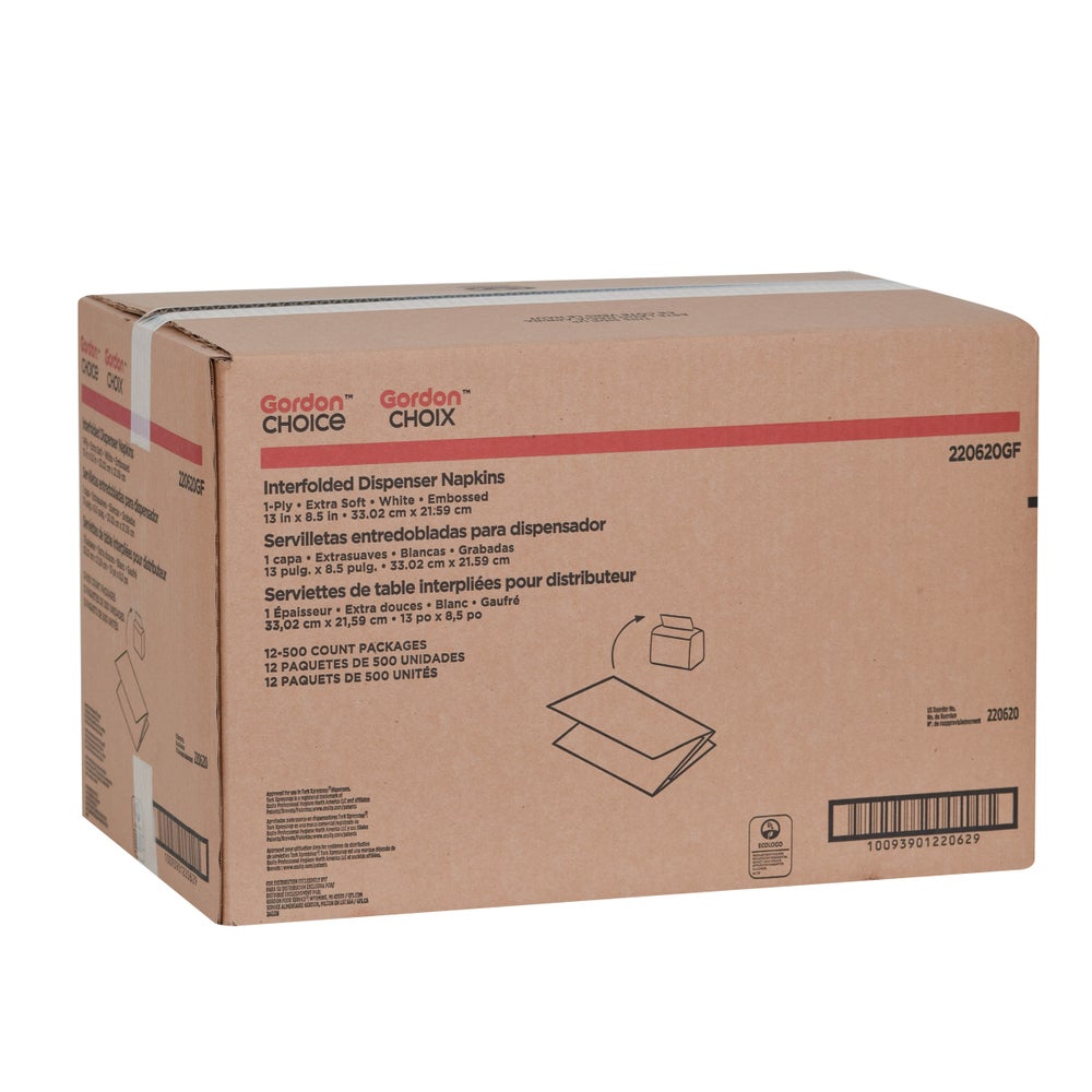 Servilletas dispensadoras entre plegadas con relieve de 1 capa, blanco, 8.5 x 13 pulgadas, 500 Cdd Paq, 12/Caj